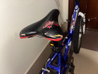 Se vende bicicleta infantil de 16 pulgadas en muy buen estado. - Color rojo vibrante. - Sillín negro con detalles amarillos. - Pedales amarillos. - Guardabarros trasero negro.