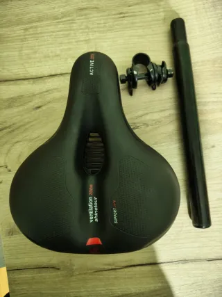 Sillín de bicicleta Selle Royal 2058. Las medidas son 145mm ancho, 285mm de largo y 315 gr de peso según fabricante. En color negro. Quitado de una bicicleta nueva por lo que está sin usar. Es bastante cómodo.