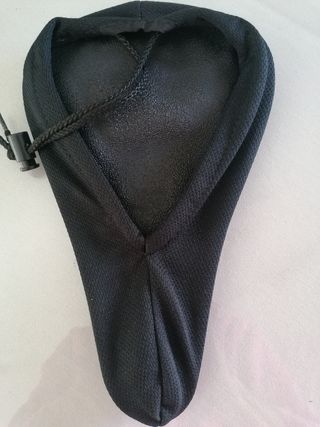 Se vende sillín de bicicleta junto con una funda de gel. - Sillín de color negro. - Funda de gel de color rosa.
