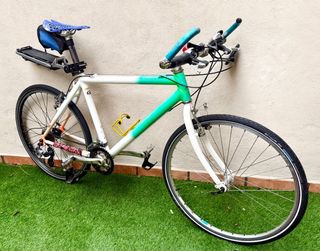 ÚLTIMO PRECIO!! MAS BICIS EN MI PERFIL. Bici de cuadro de aluminio ORIA retro ( años 90 ) talla M ( 56 tubo horiz. x 48 t. sillín ) hasta 1,75 m. Horquilla Rígida . Potencia y Manillar de aluminio con puños ergonómicos, acoples y retrovisor.Transmisión SHIMANO 7 x 3 vel. Ruedas de 26 pulgadas de aluminio con cubiertas SCHWALBE MARATHON. Frenos v brake metalicos MONTY. Sillín VERTU 180 gr. ( regalo funda de gel ) Portabidones. Pedales de plataforma con calapies abiertos. Luces delantera y trasera. Timbre. Portaequipajes de tija trasero PLETSCHER con goma y cajón. Bolsa de sillín. ciudad, hibrida, gravel, transformada, trekking