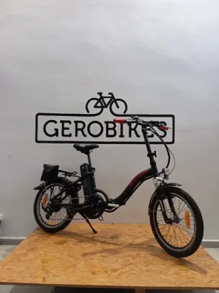 Bicicleta eléctrica plegable de color negro. Ideal para desplazamientos urbanos y fácil de almacenar. Bicicleta ELECTRICA 9transport mod.LOLA Autonomía de 30 a 50 km Velocidad max 25 km Batería Samsung totalmente nueva De 14 amperios 1 año de garantia Neumáticos nuevos Sillín nuevo Marchas SHIMANO TOURNEY (1X7) Frenos V-BRAKE TEKTRO EXTRA:CANDADO trelook 2 en 1 (doble cierre) valorado 69 eur) Puesta a punto recién echa