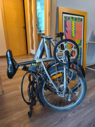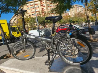 Bicicleta plegable de color gris, ideal para transportarla y guardarla fácilmente. - Cambio de 7 marchas - Marco de aluminio. - Ruedas de 20 pulgadas. - Sillín ajustable y muy confortable. - Reflectores. - Timbre. - Candado incluido. - Los pedales también se pliegan.