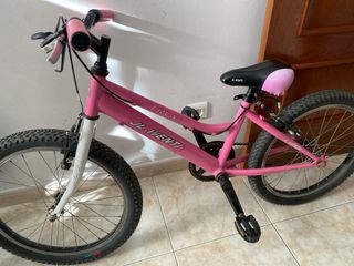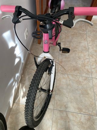 Bicicleta infantil en color rosa, adecuada para niñas de 6 a 8 años. Ideal para iniciarse en el ciclismo. - Cuadro de metal resistente. - Ruedas de 20 pulgadas. - Frenos delanteros y traseros. - Sillín ajustable. Se vende por cambio de talla. Es ideal para soltarse despues de los rodines. Las cubiertas tienen muy poco uso