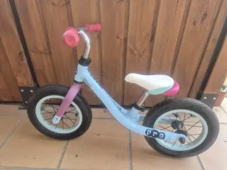 Bicicleta de aprendizaje Biking PRE GIANT en color azul y rosa. - Manillar con puños de goma. - Sillín blanco con detalles en turquesa y rosa. - Ruedas negras con llantas grises. - model de cuadro PRE GIANT.