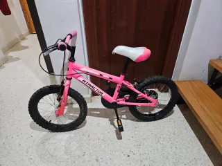Bicicleta infantil de color rosa, ideal para niñas de hasta 9 años. Perfecta para iniciarse en el ciclismo. - Ruedas de 16 pulgadas. - Diseño llamativo con detalles blancos. - Sillín ajustable.