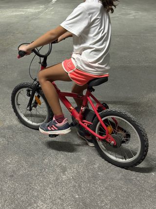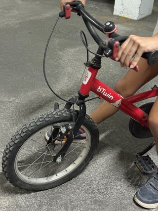 Bicicleta infantil de color rojo, ideal para los más pequeños. - Ruedas de 16 pulgadas. - Frenos delanteros y traseros. - Sillín ajustable.