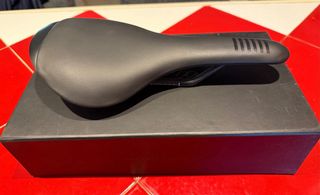 Sillín de bicicleta. Ligero (303 gramos). Mide 29 cm de largo y 13 en la parte ancha. Muy cómodo, con un par de salidas