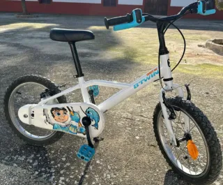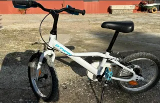 Bicicleta infantil Btwin en color blanco, ideal para los más pequeños. - Cuadro de acero. - Ruedas de 16 pulgadas. - Frenos de mano y contrapedal. - Sillín ajustable.