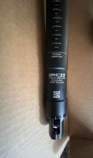 Tija de sillín DPMC22 con marcas de inserción. - Longitud: 408 mm - Diámetro: 31,6 mm - Recorrido (Drop): 125 mm