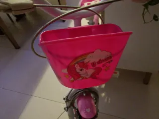 Bicicleta infantil con diseño de unicornio en color rosa y blanco. Ideal para los más pequeños. - Ruedas de color rosa. - Cesta delantera. - Sillín acolchado. - Guardabarros.