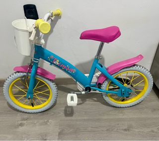 Bicicleta infantil de la marca Btwin, ideal para niños de 3 a 6 años. Su diseño es llamativo y está pensada para los primeros paseos. - Cuadro de acero. - Frenos delanteros y traseros. - Guardabarros delantero y trasero. - Sillín ajustable en altura.