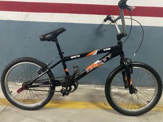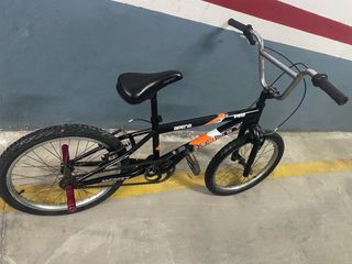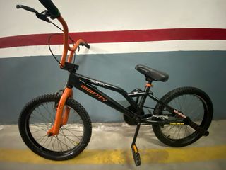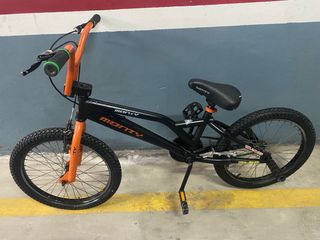 Bicicleta BMX de la marca Monty en color negro con detalles en naranja.Sin apenas uso solo algun paseo - Cuadro de acero. - Ruedas de 20 pulgadas. - Manillar de BMX. - Sillín acolchado.