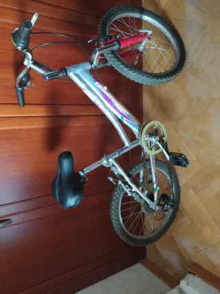 Bicicleta para niños, ideal para iniciarse en el ciclismo. - Cuadro plateado con detalles de colores. - Sillín negro anatómico en perfecto estado - Ruedas con llantas de radios.