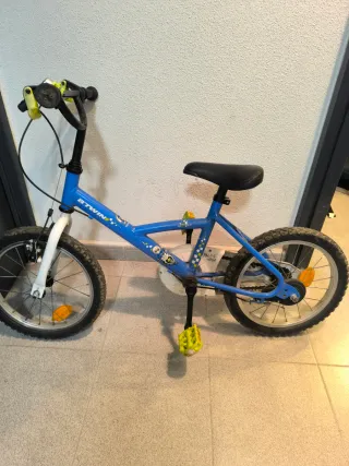 Bicicleta infantil de color azul, ideal para los más pequeños. - Ruedas de 14 pulgadas. - Pedales amarillos. - Sillín negro.
