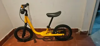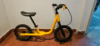 Bicicleta de aprendizaje Btwin en color amarillo. 12 pulgadas - Marco de metal resistente. - Ruedas negras. - Sillín ajustable.