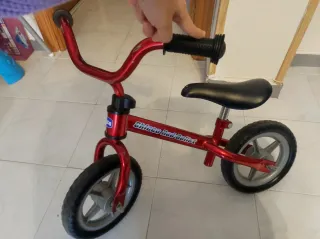 Bicicleta de aprendizaje de la marca Chicco en color rojo. - Diseño ligero y resistente. - Ruedas de goma. - Sillín ajustable.