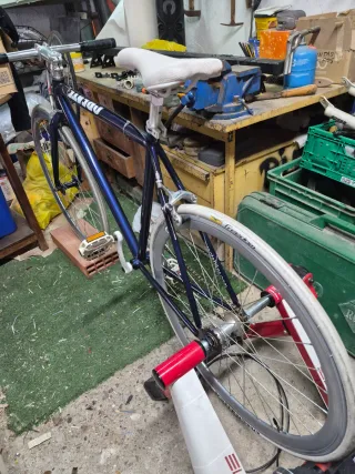 Bicicleta de montaña con un diseño robusto y funcional.Totalmente poco uso revisada recoger en zona Alcobendas o Torrelaguna NEGOCIABLE - Cuadro de metal plateado. - Ruedas de 26 pulgadas. - Sillín negro. - Manillar con espejo retrovisor. - Portabidón azul.21 velocidades