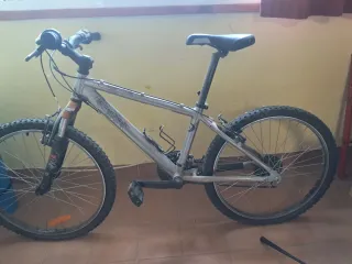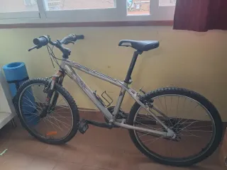 Bicicleta de montaña con un diseño robusto y llantas todoterreno. - Cuadro de color plateado. - Manillar con puños negros. - Sillín negro. - Portabidón negro. Necesita limpieza, engrase e inflar ruedas. Recogida en persona. No hago envío.