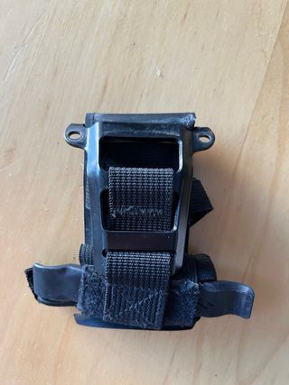 Portacámaras Specialized para montar bajo el sillín de la bicicleta. Incluye el soporte y la palanca. - Color negro. - Material: Plástico y nylon. - Adaptado para atornillar en asientos specialized. - Se puede llevar cámara, botellín de CO2 y palanca todo recogido. - Compatible con tija telescópica.