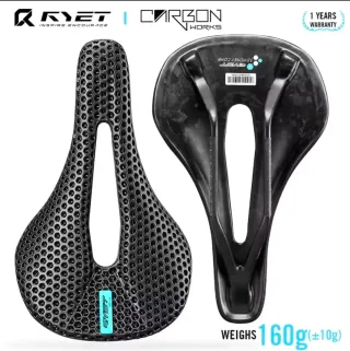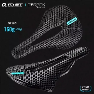 Sillín de carbono QRVET con un diseño innovador y ligero. - Peso: 160g (±10g). - Material: Carbono. - Diseño con patrón de panal.