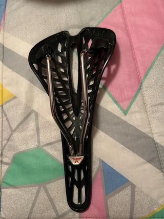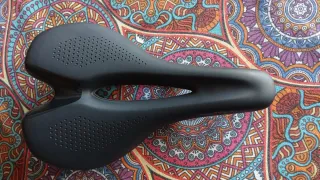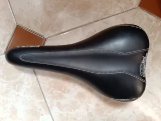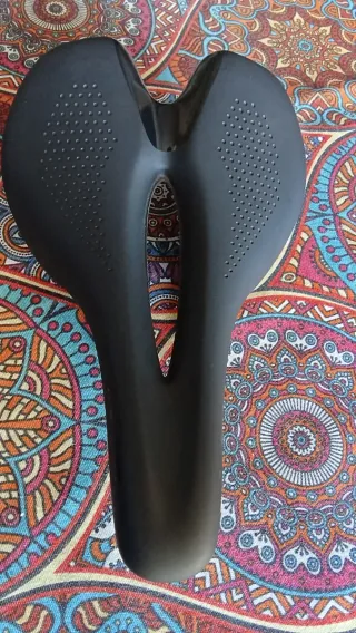 Sillín de bicicleta diseñado para reducir la compresión. - Color negro. - Costuras en contraste. Solo se estreno un dia y ha ido de cajon en cajon.
