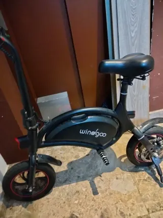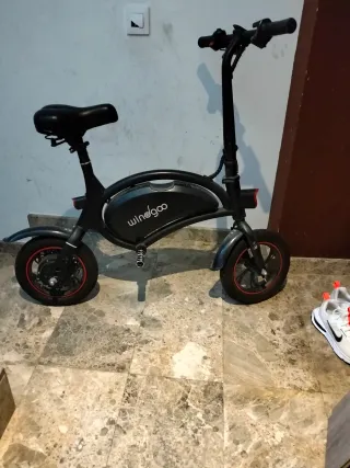 Bicicleta eléctrica Windgoo en color negro. Diseño moderno y compacto. - Ruedas con aro rojo. - Sillín negro. - Frenos de disco.