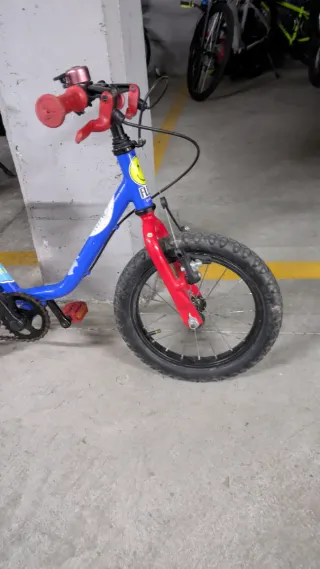 Bicicleta para niños o niñas, ideal para aprender. - Color: azul. - Ruedas con buen agarre. - Sillín ajustable. - Incluye protecciones (están desmontadas) casco y ruedines.
