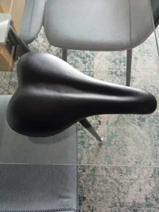 Sillín de bicicleta de color negro, diseñado para adultos. Su forma ergonómica busca ofrecer comodidad. NUEVO! Sin estrenar. - Material: Polipiel. - Color: Negro.
