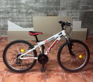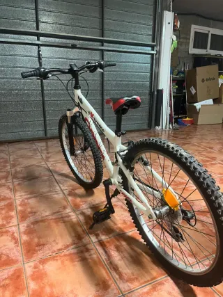Bicicleta Orbea modelo Extreme en talla 24. MTB, BTT. - Suspensión delantera - Cambio 3 (platos) x 6 (piñones) - Cuadro aluminio - Cuadro de color blanco. - Sillín deportivo rojo y negro. - Ruedas montaña