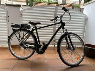 Bicicleta eléctrica de paseo ELOPS 920, ideal para desplazamientos urbanos. - Cuadro de aluminio. - Motor eléctrico integrado en el buje trasero. - Batería extraíble. - Frenos de disco. - Sillín cómodo. - Guardabarros y portabultos.