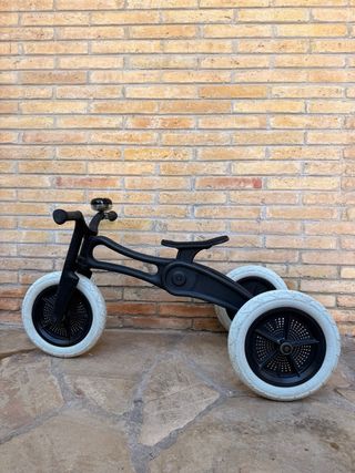Bicicleta de equilibrio Wishbone 3 en 1, fabricada con plástico reciclado. - Diseño moderno y ligero. - Ruedas blancas de gran tamaño. - Timbre incluido en el manillar.