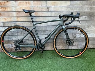 Bicicleta Megamo West 10 en talla S. Diseñada para gravel, combina rendimiento y estilo. - Cuadro de carbono. - Transmisión SRAM apex - Frenos de disco hidráulicos. - Ruedas de 700c. - Manillar y potencia integrada - No incluye pedales - Si incluye porta bidón