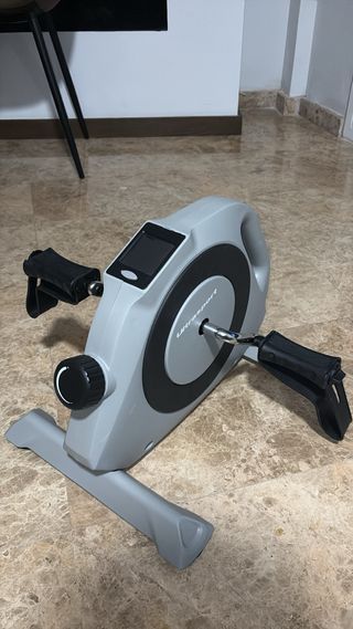 Bicicleta estática compacta para ejercitar pies y manos. Su diseño permite usarla en diferentes superficies. - Color gris. - Pantalla digital. - Resistencia ajustable. Es una bici de Pies y una de manos, la de pies cuesta 30 euros, no se ha utilizado, la de manos 15.