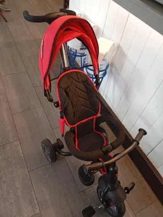 Triciclo Urban Trike en color rojo y negro. Ideal para paseos. - Capota protectora. - Asiento acolchado con arnés. - Manillar con empuñaduras. - Ruedas resistentes.