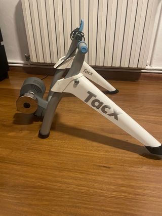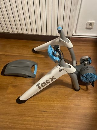 Rodillo de entrenamiento Tacx Flow Smart para bicicletas. Diseñado para mejorar tu rendimiento. - Con conectividad con aplicaciones como Zwift. - Color blanco y gris. - Incluye soporte para rueda delantera.