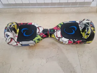 Hoverboard con un diseño llamativo y moderno, cubierto de un estampado tipo graffiti. - Diseño de graffiti multicolor. - Plataformas antideslizantes con logo azul. - Casi no ha tenido uso. - Revisar las fotos para ver el estado.