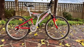 Bicicleta de montaña Fregus con un diseño colorido. - Cuadro con pintura multicolor. - Ruedas de montaña. Estado en la foto. Funciona, pero tiene algún problema con los rodamientos de las ruedas traseras. Bicicleta muy confiable.