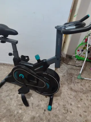Bicicleta estática Cecotec Indoor4000 en color negro y detalles en azul. - Diseño moderno y compacto. - Sistema de resistencia magnética. - Pantalla digital para seguimiento de entrenamiento.