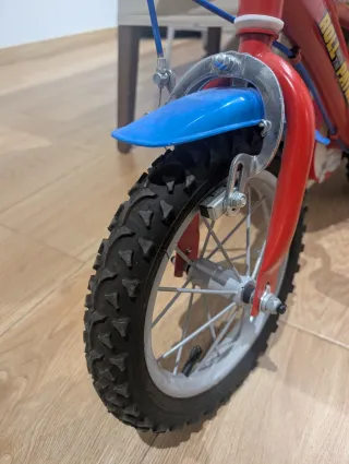 Bicicleta infantil de color azul, ideal para los más pequeños. - Ruedines incluidos. - Puños naranjas. - Diseño con dibujos.