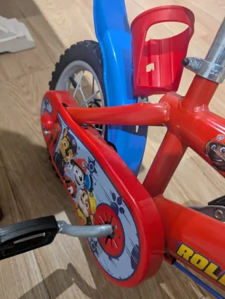 Bicicleta infantil con temática de Paw Patrol. Ideal para los más pequeños. - Rueda delantera con guardabarros azul. - Frenos metálicos. - Marco rojo.
