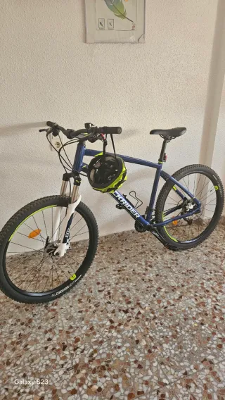 Precio negociable, dentro de lo razonable Bicicleta de montaña RockRider ST540 en color azul. Lo vendo porque no lo uso, está en perfecto estado. Lo entrego con un caso y un cambio de llantas. - Cuadro de aluminio - Suspensión delantera. - Frenos de disco. - Ruedas de 27,5x21