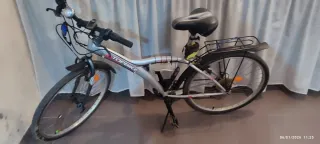 Bicicleta de paseo marca Decathlon, ideal para desplazamientos urbanos. - Cesta delantera. - Portabultos trasero. - Timbre.