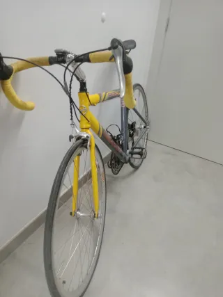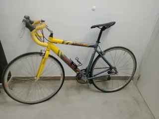 Bicicleta de carretera con un llamativo diseño en amarillo y gris. Ideal para paseos y entrenamientos. - Cuadro de aluminio. - Ruedas de 700c. - Manillar de carretera. - Grupo Sora 3x8 - Talla M