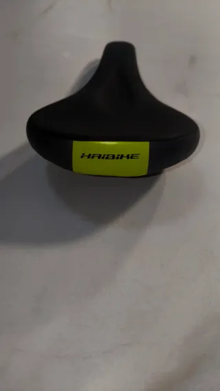 Sillín de bicicleta Haibike en color negro. - Diseño ergonómico. - Superficie con textura para mayor agarre. - Logo de la marca en la parte trasera.