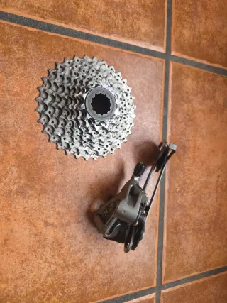 Conjunto de cambio trasero Shimano Deore LX y cassette. - Esta Desgastado pero Funciona correctamente al instalarlo en cualquier bici , lo cambie a uno de Pata Corta pero funcionaba Correctamente - Cambio trasero Shimano Deore LX. - Cassette de 11-32 dientes. Las dos cosas a 20€ Precio no negociable y Envio Disponible