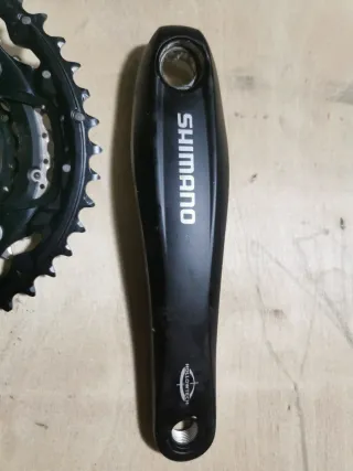 Conjunto de bielas Hollowtech II y caja de pedalier de la marca Shimano. - Bielas de aluminio. - Caja de pedalier. BB ES25. Esta nuevo a estrenar, lo que se ve es un plastico protector