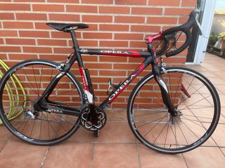 Bicicleta de carretera con cuadro de carbono de la marca Opera. - Cuadro de carbono. - Fabricada en italia por fausto pinarello. -Talla 53. -Cuadro full carbono , horquilla Opus carbono y tija trasera opera de carbono. -Equipamiento Shinano 105 2x10. -ruedas Shimano RS 100 ready tubeless, con neumáticos con cámara convencional. -Manillar Most de alu/ carbono. -Buen estado, funciona perfectamente; con algunas marcas de uso. - No envío solo venta en mano.