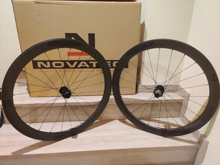 Novatec r5 disc perfil 50mm anclaje disco centerlock 24 radios nucleo shimano 11/12s road antimarcaje (abg) rodamientos sellados EZO nuevas a estrenar 12/100 12/142, Conjunto de juego de ruedas, NOVATEC CARBON R5 DISC, para bicicletas de carretera con frenos de disco y ejes de 12x100 y 12x142, totalmente a estrenar, ruedas de carbono con 50mm de perfil y ancho para cubiertas de 23mm hasta 28mm, muy ligeras 1595gr segun fabricante, rodamientos de alta calidad, prestaciones de alta gama, rodamientos sellados de alta precision y radios dtswiss