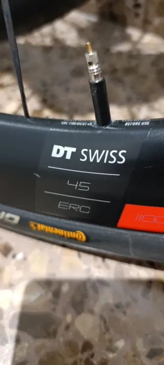 Juego de ruedas DT Swiss para bicicleta. - Modelo: DT Swiss erc 1100 dicut perfil 45 interno de 22 - buje 180 impecables de carbono 1400gr nucleo shimano hg