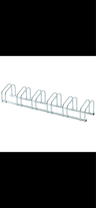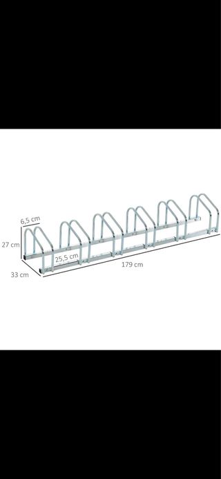 Soporte metálico para aparcar hasta 6 bicicletas de forma ordenada. Ideal para exteriores o garajes. - Construcción robusta de metal. - Diseño lineal para optimizar el espacio.